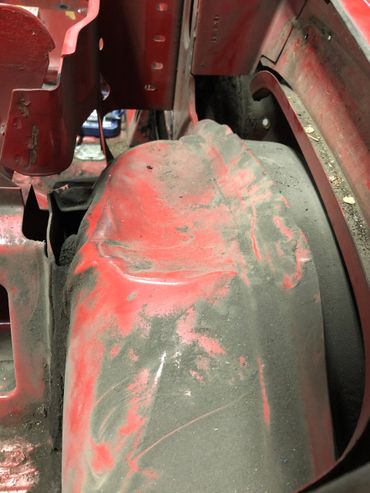 1964.5 Mustang models consisted of hardtop coupes and convertibles. The very earliest pre-production convertibles used the same rear wheel well sections as the coupes, which caused a clearance problem for the convertible top when in the down and stored position. The temporary solution was to pound the tops of the wheel wells down with large hammer. This was just one of many irregularities to be corrected in the production line learning process. A correctly formed section was created for the mass production convertibles.