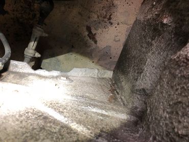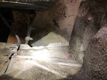 The tires on the earliest pre-production units would rub the frame while turning sharply to the right. The temporary fix was to crudely notch out the frame with a torch. The last picture shows the tire fitting into this torched out notch.