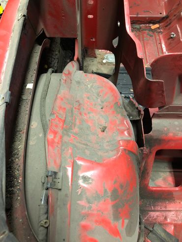 The dash frame, on the drivers side, was cut out with a torch to make room for the instrument panel. Mass production units used a modified frame that would accept the cluster without any interference.