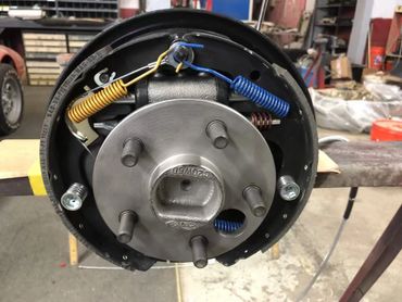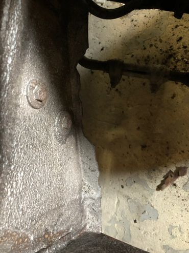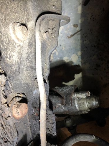 The brake booster mounts to the firewall with four bolts that screw into threaded fittings welded to the backside of the firewall. The bolt pattern on the brake booster did not match up with the location of these threaded fittings, so the left side holes were wobbled out and loose threaded nuts were used on the backside for attachment.