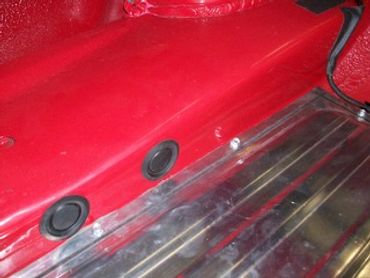 The reason for the incorrect paint color is purely speculation, but that is how it left the factory. May have been paint left over in the paint gun from the last vehicle that was painted?? In any case, the dynasty green paint was replicated in the re-paint process, photo documented and the correct red and black paint was applied over it. The last four pictures show the dynasty green paint reapplied as it came from the factory.