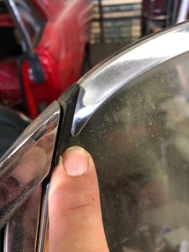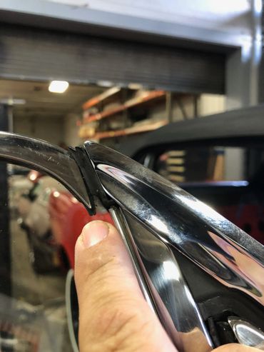 Very early pre-production units had at least one side window trim that came down into a very sharp point, which could catch on the bottom window seal when the window was rolled completely down. Later pre-production units, as well as all production models, had a rounded edge to prevent the interference. #139 has one each of the different versions.